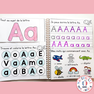 In Module 3, AB...Camp d’entrainement, I’ll explain exactly how I use a letter a day, ABC Bootcamp-style, to help my students learn our daily routine, how to listen and follow directions, how to use scissors and glue, and to pump them full of French vocabulary! Most of them also learn a whole bunch of letter names and sounds - bonus! :)